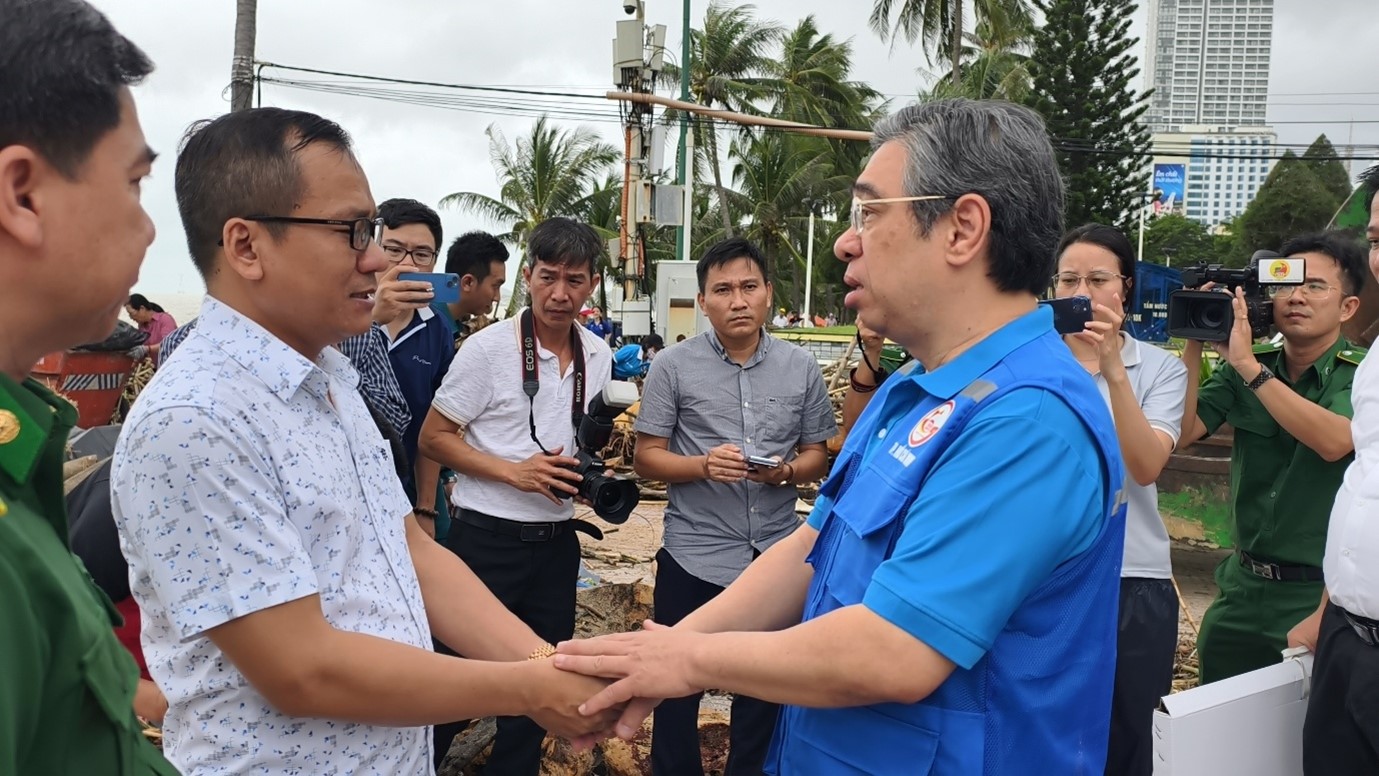 Chiều cùng ngày, đoàn Lãnh đạo Công ty TNHH Một thành viên Môi trường đô thị TP. Hồ Chí Minh do đồng chí Lê Công Phương - Giám đốc Công ty dẫn đầu đã trực tiếp có mặt tại hiện trường mưa lũ ở Khánh Hòa. Đoàn đã thăm hỏi, động viên người dân bị ảnh hưởng, đồng thời kiểm tra, chỉ đạo kịp thời nhiệm vụ cho đội ngũ cán bộ, người lao động CITENCO đang ngày đêm hỗ trợ công tác vệ sinh môi trường tại địa phương.