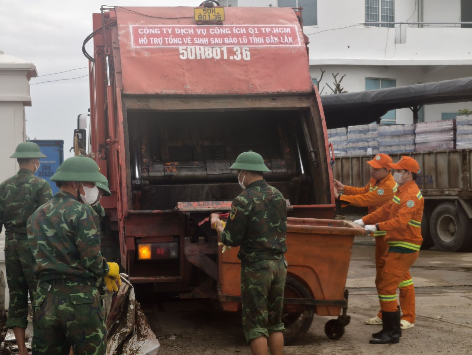 Thực hiện chỉ đạo của Ủy ban nhân dân Thành phố Hồ Chí Minh tại công văn số 4250/UBND-ĐT ngày 29 tháng 11 năm 2025, giao Công ty TNHH một thành viên Môi trường đô thị Thành phố Hồ Chí Minh làm Trưởng đoàn điều phối chung của đoàn hỗ trợ tỉnh Đắk Lắk. Đoàn công tác do ông Nguyễn Tăng Hải – Phó Giám đốc Công ty TNHH một thành viên Môi trường đô thị Thành phố Hồ Chí Minh làm Trưởng đoàn, cùng các thành viên và phương tiện chuyên dụng từ các đơn vị tham gia hỗ trợ công tác thu gom, vận chuyển rác thải sau bão lũ tại tỉnh Đắk Lắk (Công ty TNHH MTV DVCI Quận 1: 01 xe ép 11 tấn; Công ty TNHH MTV DVCI Sài Gòn Xanh: 01 xe ép; Công ty TNHH MTV DVCI Nhà Bè: 01 xe ép 10 tấn; Công tyn TNHH MTV Liên hợp KHCNMT Biwase: 05 xe thùng; Công ty Môi trường Đô thị Bình Dương: 01 xe ép 5 tấn; Công ty Cổ phần Dịch vụ Đô thị Bà Rịa: 01 xe 6 tấn; Công ty Cổ phần Môi trường Việt Úc: 02 xe thùng; Công ty TNHH MTV DVCI Củ Chi: 01 xe ép 8 tấn; Công ty TNHH MTV DVCI Phú Nhuận: 01 xe ép 11 tấn).