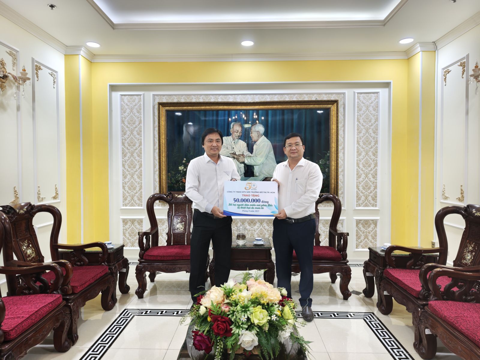 Sáng ngày 25.8.2025, đoàn Công ty TNHH MTV Môi trường đô thị TP.HCM do ông Lê Công Phương, PBT Đảng uỷ, Giám đốc Công ty dẫn đoàn đến Ủy ban Mặt trận Tổ quốc Việt Nam TP.HCM để trao tặng 50.000.000 đồng nhằm đóng góp, ủng hộ vào nguồn cứu trợ của Thành phố Hồ Chí Minh năm 2025, góp phần hỗ trợ đồng bào các tỉnh bị thiệt hại do bão, lũ gây ra. Hoạt động thể hiện rõ tinh thần trách nhiệm xã hội và truyền thống "lá lành đùm lá rách" của tập thể cán bộ, nhân viên, người lao động Công ty. Đây là nghĩa cử nhân văn, nhằm kịp thời chia sẻ khó khăn với người dân vùng thiên tai.