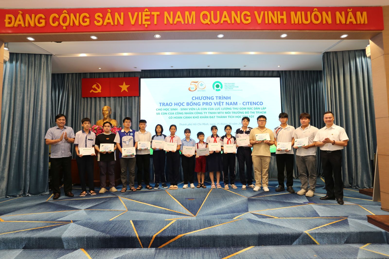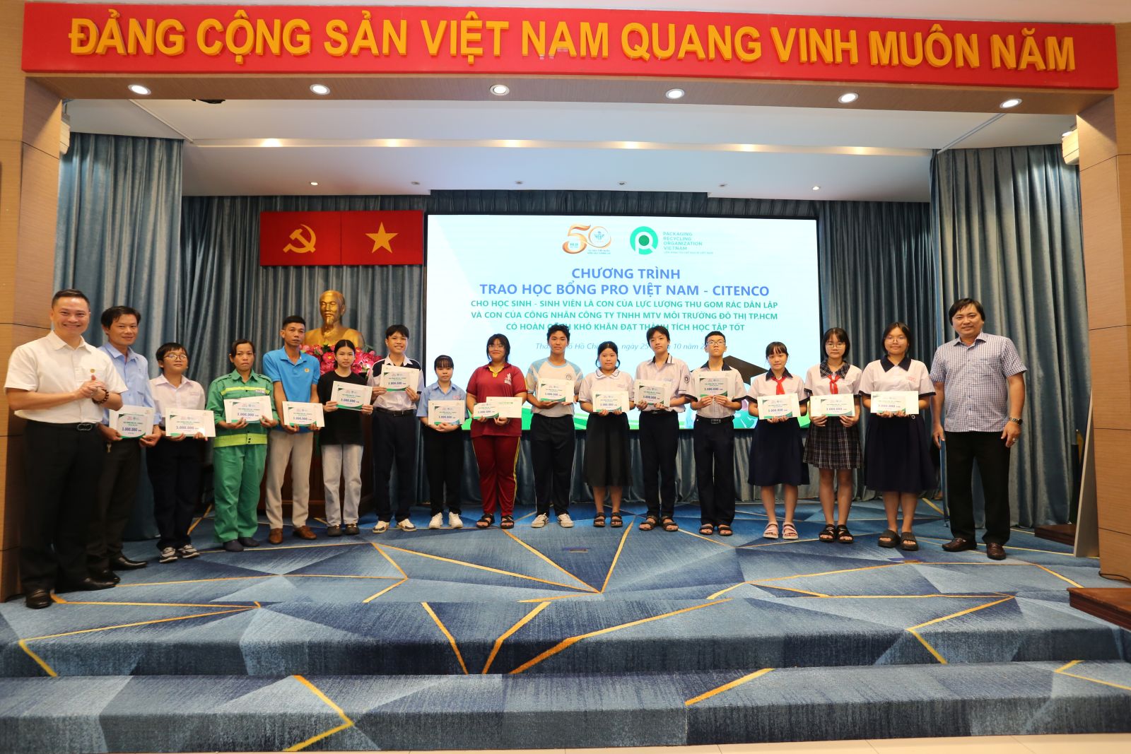 Trong khuôn khổ hợp tác giữa CITENCO và PRO Việt Nam, hai đơn vị đã gắn bó chặt chẽ trong nhiều chương trình ý nghĩa hướng đến mục tiêu phát triển bền vững và lan tỏa các giá trị nhân văn trong cộng đồng. Một trong những hoạt động tiêu biểu là Chương trình Học bổng PRO Việt Nam – CITENCO, được khởi xướng với mong muốn tri ân, sẻ chia và tiếp sức cho các em học sinh, sinh viên con của lực lượng thu gom rác dân lập và con của cán bộ công nhân viên CITENCO– những “chiến binh thầm lặng” góp phần giữ cho thành phố luôn xanh, sạch, đẹp.