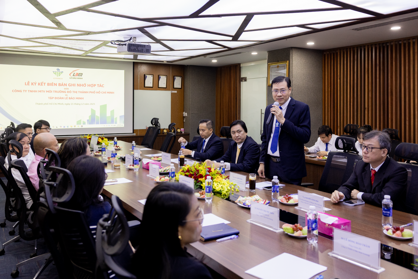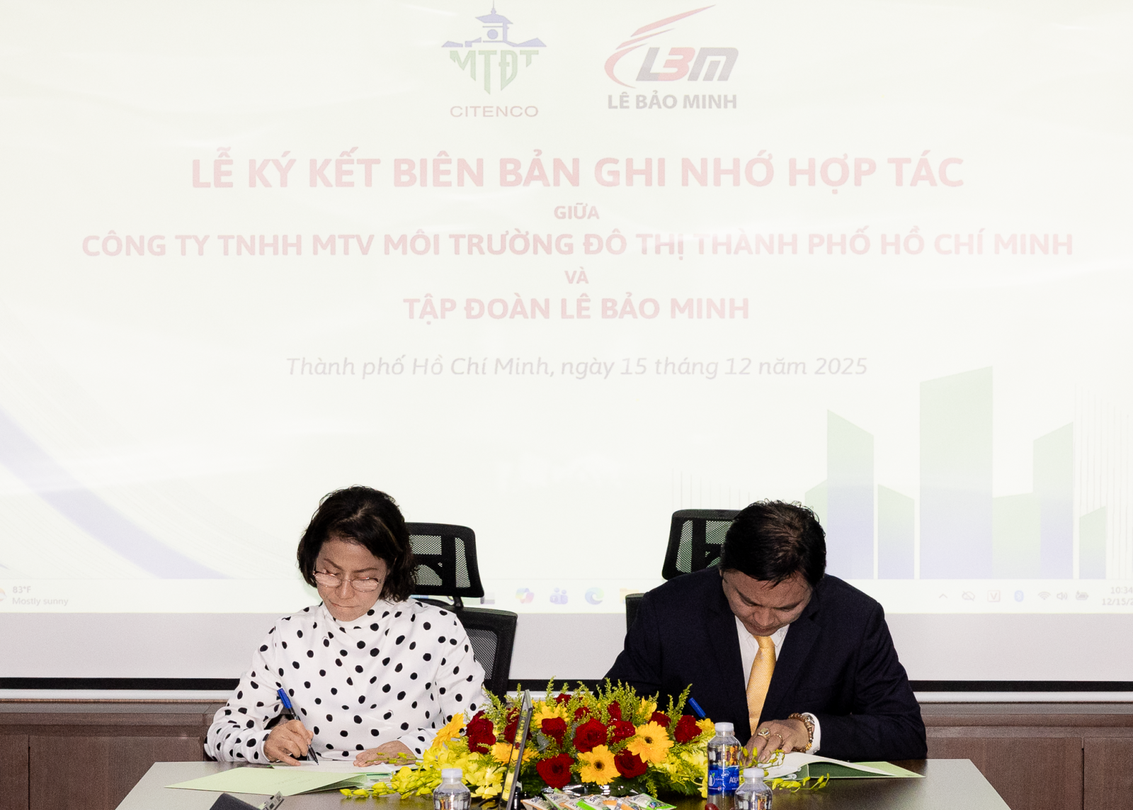 Sáng ngày 15/12/2025, tại Công ty Cổ phần Lê Bảo Minh, số 184 Nam Kỳ Khởi Nghĩa, Phường Xuân Hòa, Thành phố Hồ Chí Minh, đã diễn ra Lễ ký kết Biên bản ghi nhớ Hợp tác giữa Công ty TNHH một thành viên Môi trường đô thị Thành phố Hồ Chí Minh và Công ty Cổ phần Lê Bảo Minh.