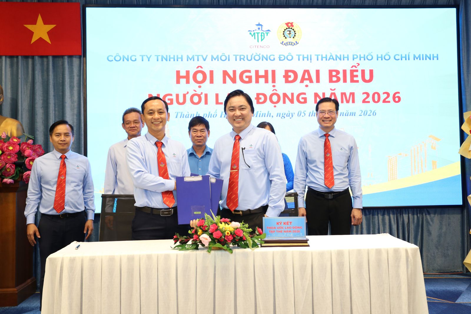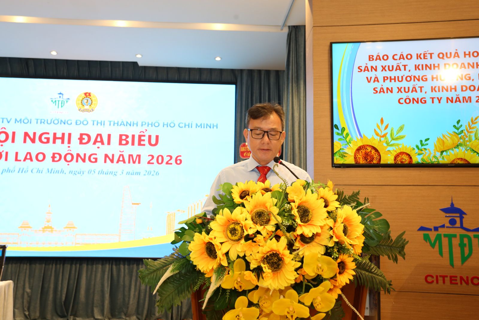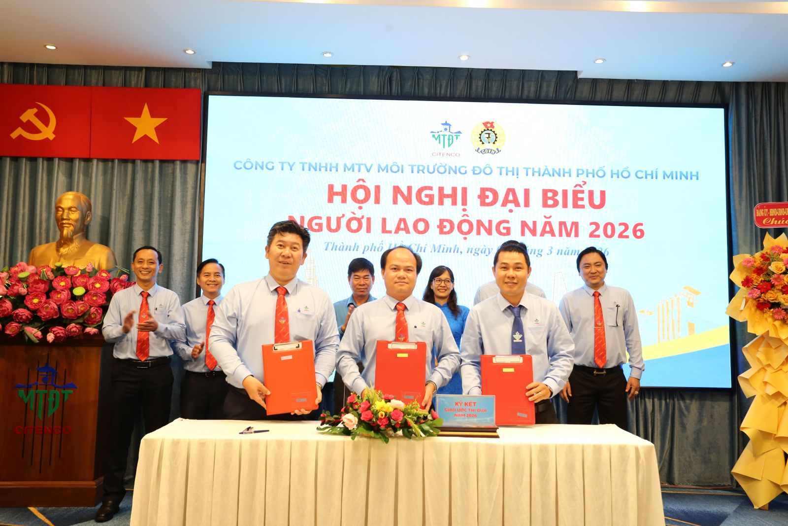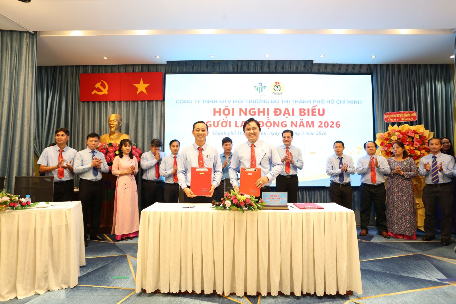 Sáng ngày 05/3/2026, Công ty TNHH một thành viên Môi trường đô thị Thành phố Hồ Chí Minh đã long trọng tổ chức Hội nghị đại biểu Người lao động năm 2026 nhằm tổng kết, đánh giá kết quả thực hiện Nghị quyết Hội nghị năm 2025, đồng thời đề ra phương hướng, nhiệm vụ trọng tâm cho năm 2026. Hội nghị là diễn đàn quan trọng để người lao động phát huy quyền làm chủ, tham gia đóng góp ý kiến xây dựng Công ty ngày càng phát triển bền vững.