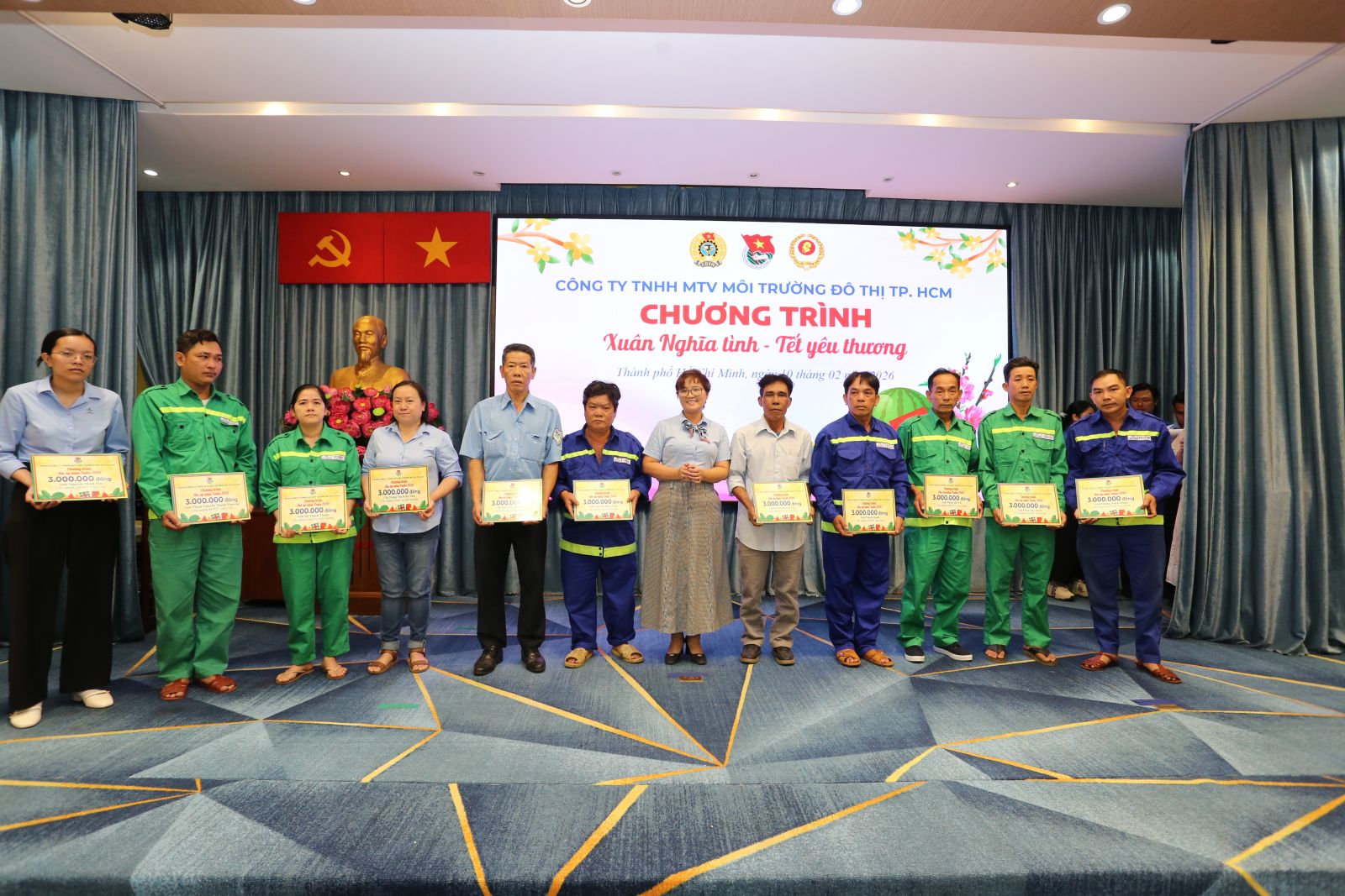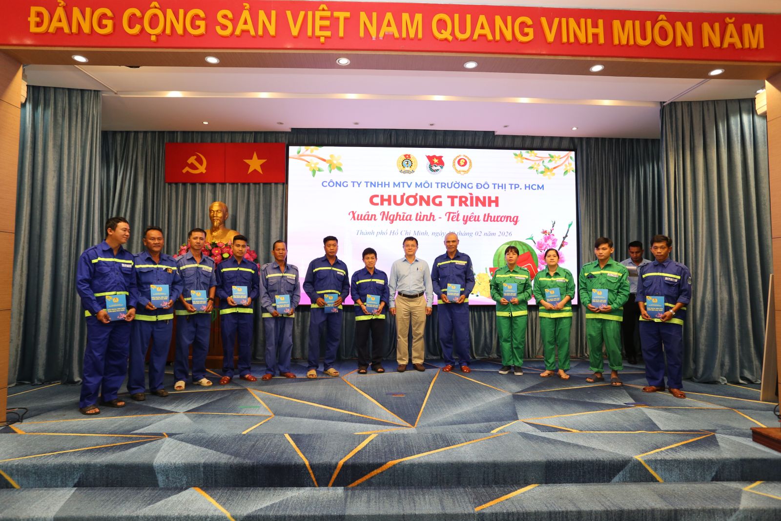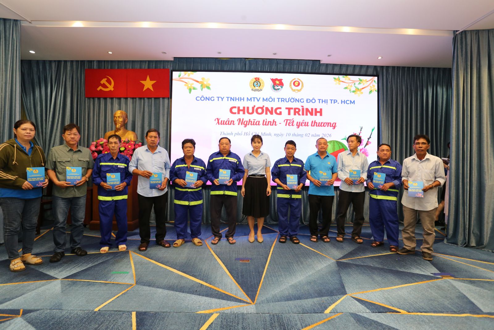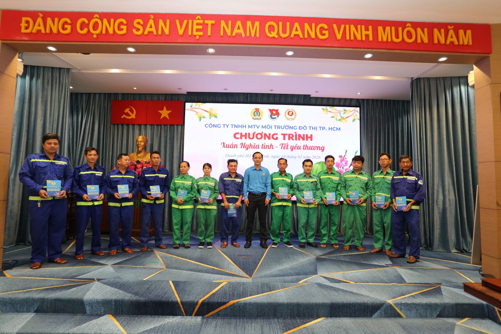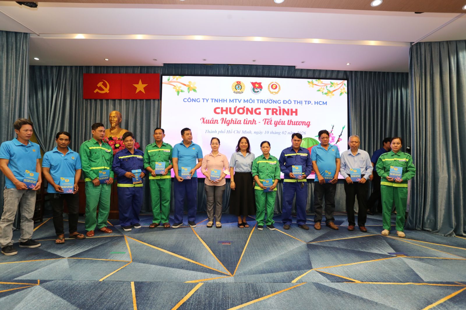 Hòa trong không khí rộn ràng chào đón Tết, sáng ngày 10/02/2026, Công đoàn Công ty TNHH MTV Môi trường đô thị Thành phố Hồ Chí Minh phối hợp Đoàn Thanh niên Công ty và Hội Cựu chiến binh Công ty cùng tổ chức Chương trình “Xuân nghĩa tình – Tết yêu thương” năm 2026, nhằm thể hiện vai trò, trách nhiệm của các tổ chức đoàn thể trong công tác chăm lo đời sống vật chất, tinh thần cho cán bộ, đoàn viên, hội viên, người lao động, đặc biệt là cán bộ, đoàn viên, hội viên, người lao động Công ty mắc bệnh hiểm nghèo, gia đình có hoàn cảnh khó khăn góp phần lan tỏa tinh thần tương thân tương ái, xây dựng môi trường làm việc nhân văn, đoàn kết, nghĩa tình trong dịp Tết Nguyên đán năm 2026.
