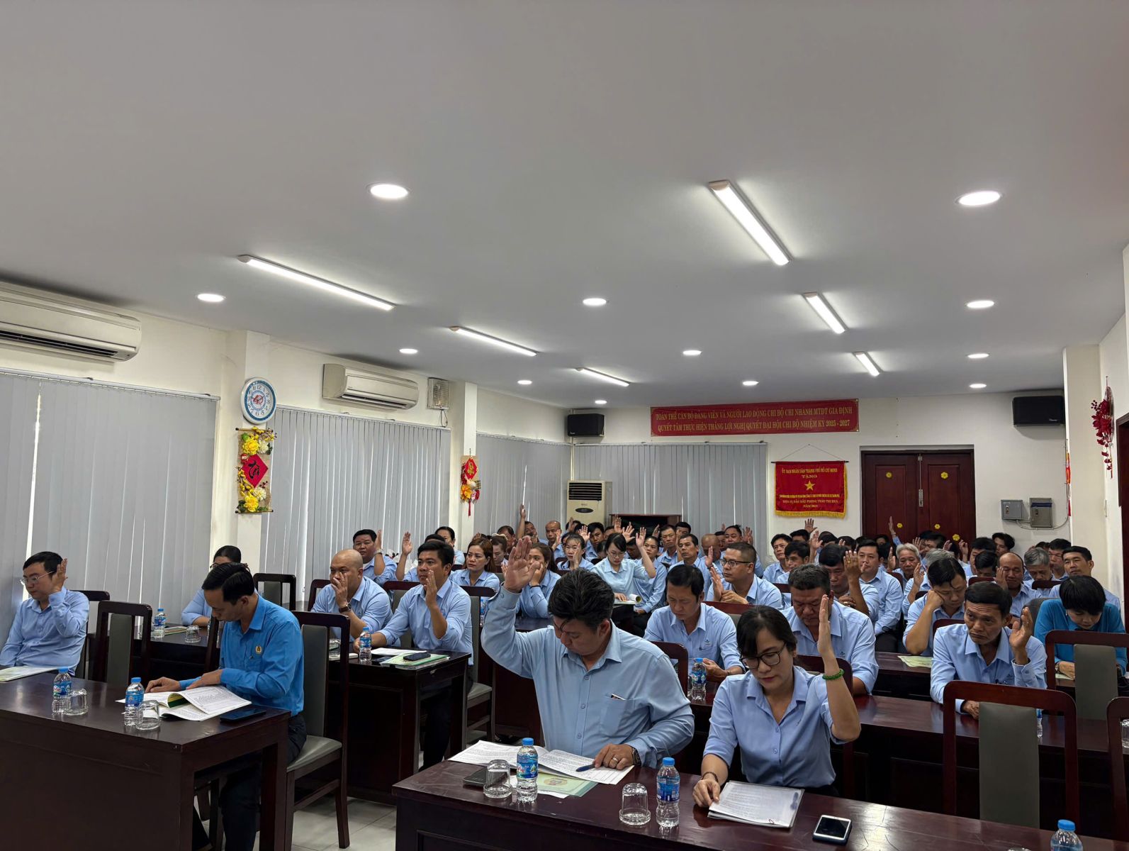 5. Đại hội Công đoàn bộ phận Khối Văn phòng Công ty, nhiệm kỳ 2025 – 2030, đã bầu ra Ban chấp hành Công đoàn bộ phận gồm 07 đồng chí: Đ/c Lê Thị Mỹ Chi, Đ/c Nguyễn Thị Thu Hương, Đ/c Đặng Thị Hồng Phượng, Đ/c Nguyễn Thị Ngọc Trang, Đ/c Trang Nguyễn Cẩm Tú, Đ/c Huỳnh Minh Tuấn, Đ/c Trần Lê Thanh Tuấn