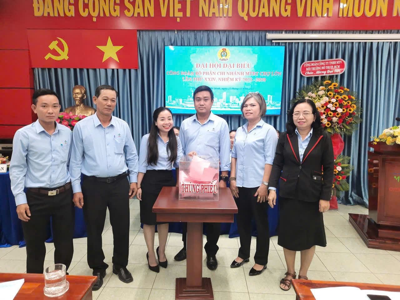 1. Đại hội Công đoàn bộ phận Chi nhánh Môi trường đô thị Chợ Lớn, nhiệm kỳ 2025 – 2030, đã bầu ra Ban chấp hành Công đoàn Chi nhánh gồm 07 đồng chí: Đ/c Phạm Thị Đèo, Đ/c Huỳnh Thị Ngọc Hân, Đ/c Huỳnh Thị Tý, Đ/c Dương Thanh Phúc, Đ/c Nguyễn Thị Kim Hằng, Đ/c Lê Dương Trung, Đ/c Nguyễn Thành Luận B