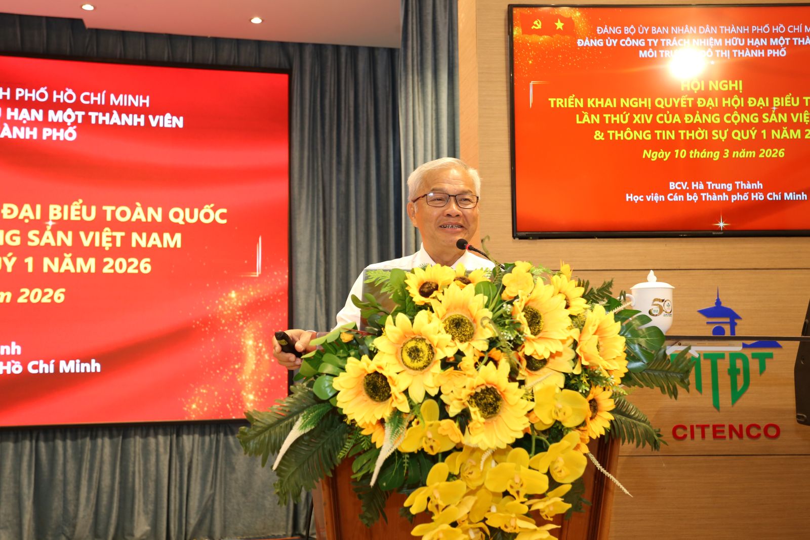 Sáng ngày 10/3/2026, tại Hội trường Công ty, Đảng ủy Công ty TNHH MTV Môi trường đô thị TP.HCM đã tổ chức triển khai học tập Nghị quyết Đại hội đại biểu toàn quốc lần thứ XIV của Đảng và nghe thông tin thời sự Quý I/2026 cho toàn thể đảng viên trong Đảng bộ.