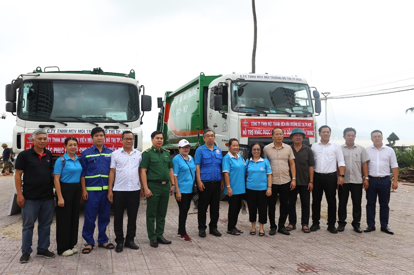 Chiều cùng ngày, đoàn Lãnh đạo Công ty TNHH Một thành viên Môi trường đô thị TP. Hồ Chí Minh do đồng chí Lê Công Phương - Giám đốc Công ty dẫn đầu đã trực tiếp có mặt tại hiện trường mưa lũ ở Khánh Hòa. Đoàn đã thăm hỏi, động viên người dân bị ảnh hưởng, đồng thời kiểm tra, chỉ đạo kịp thời nhiệm vụ cho đội ngũ cán bộ, người lao động CITENCO đang ngày đêm hỗ trợ công tác vệ sinh môi trường tại địa phương.