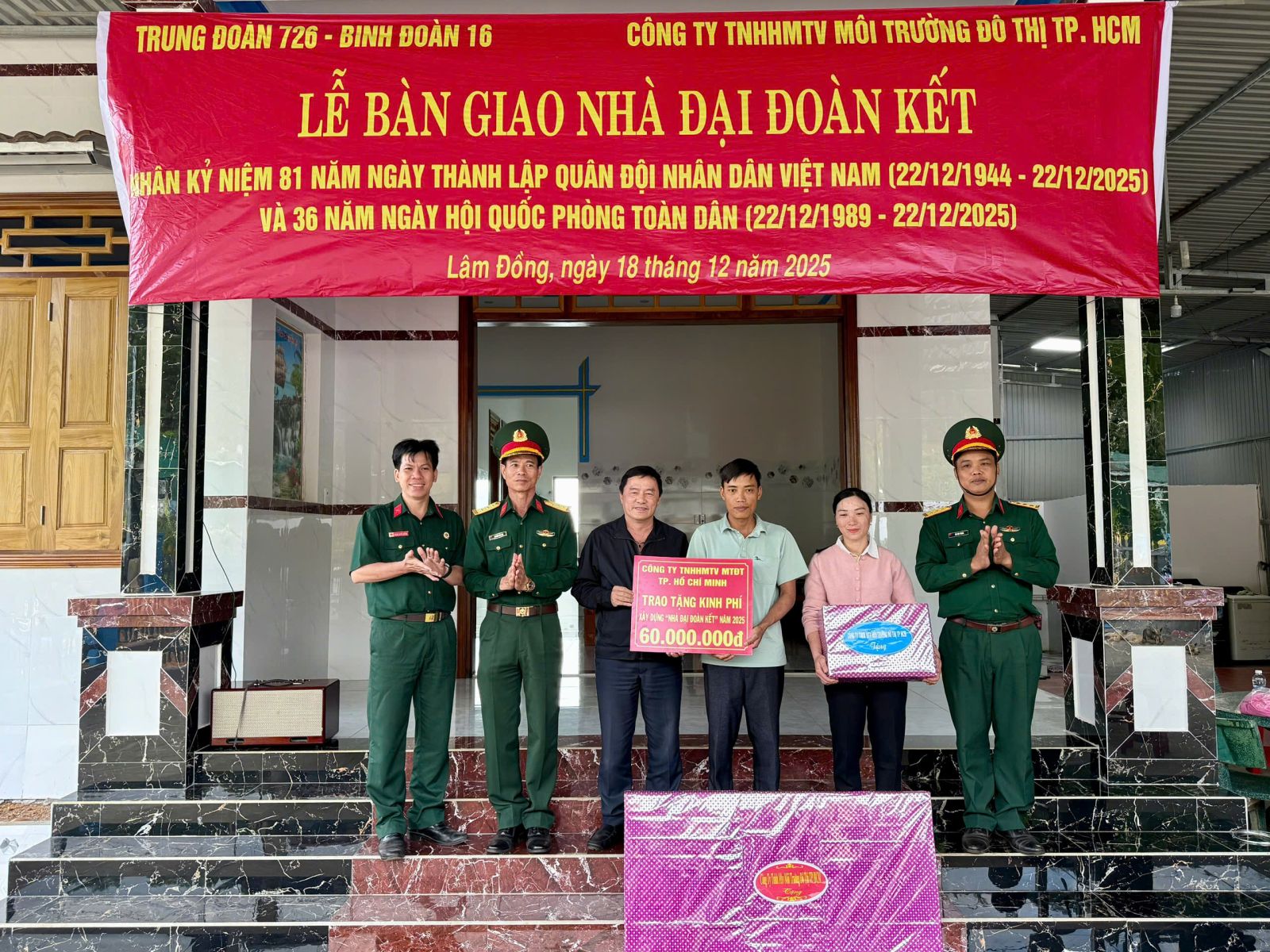 Nhân kỷ niệm 81 năm Ngày thành lập Quân đội nhân dân Việt Nam (22/12/1944 – 22/12/2025) và 36 năm Ngày hội Quốc phòng toàn dân (22/12/1989 – 22/12/2025), Công ty TNHH MTV Môi trường đô thị Thành phố Hồ Chí Minh đã tổ chức chương trình gặp gỡ, giao lưu với Trung đoàn 726 (Binh đoàn 16) tại xã Quảng Trực, huyện Tuy Đức, tỉnh Đắk Nông. Đây là hoạt động mang ý nghĩa chính trị - xã hội sâu sắc, thể hiện tình cảm, trách nhiệm và sự tri ân của tập thể cán bộ, người lao động Công ty đối với lực lượng Quân đội nhân dân Việt Nam, lực lượng nòng cốt trong sự nghiệp xây dựng và bảo vệ Tổ quốc. Hai bên đã cùng nhau ôn lại truyền thống đấu tranh cách mạng vẻ vang của dân tộc và Quân đội nhân dân Việt Nam anh hùng trong suốt 81 năm xây dựng, chiến đấu và trưởng thành. Hoạt động góp phần khơi dậy niềm tự hào dân tộc, củng cố niềm tin vững chắc vào sự lãnh đạo của Đảng, đồng thời nâng cao nhận thức về vai trò, trách nhiệm của mỗi cán bộ, đảng viên và người lao động trong công cuộc xây dựng nền quốc phòng toàn dân vững mạnh, đáp ứng yêu cầu nhiệm vụ trong tình hình mới.