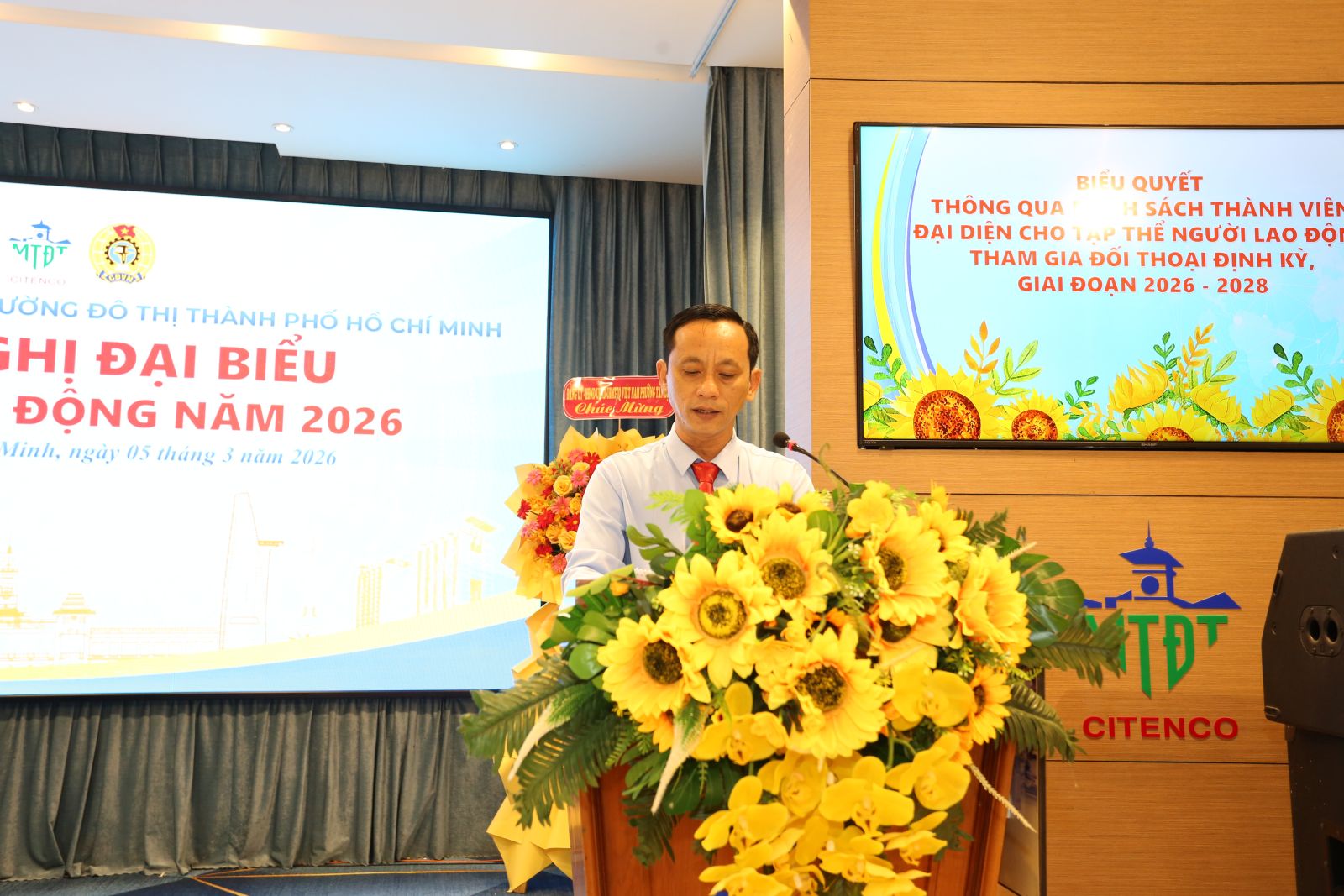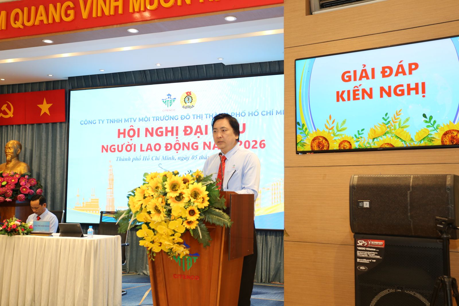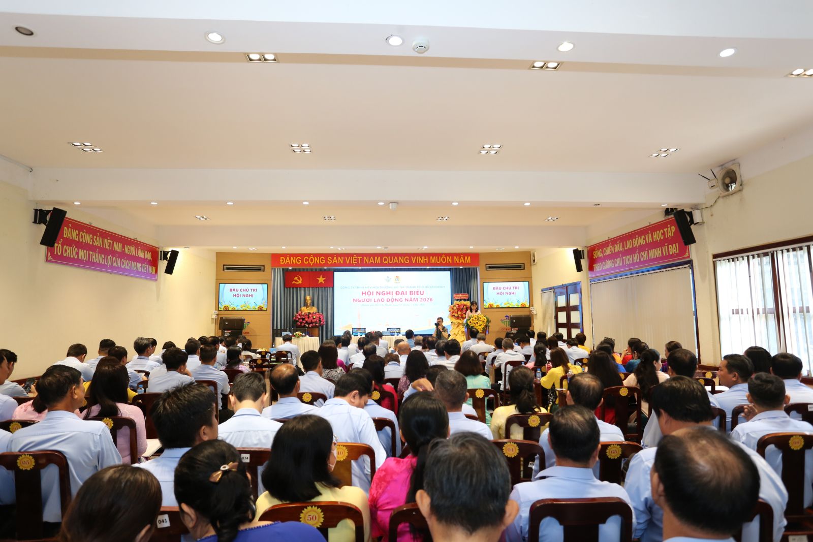 Sáng ngày 05/3/2026, Công ty TNHH một thành viên Môi trường đô thị Thành phố Hồ Chí Minh đã long trọng tổ chức Hội nghị đại biểu Người lao động năm 2026 nhằm tổng kết, đánh giá kết quả thực hiện Nghị quyết Hội nghị năm 2025, đồng thời đề ra phương hướng, nhiệm vụ trọng tâm cho năm 2026. Hội nghị là diễn đàn quan trọng để người lao động phát huy quyền làm chủ, tham gia đóng góp ý kiến xây dựng Công ty ngày càng phát triển bền vững.