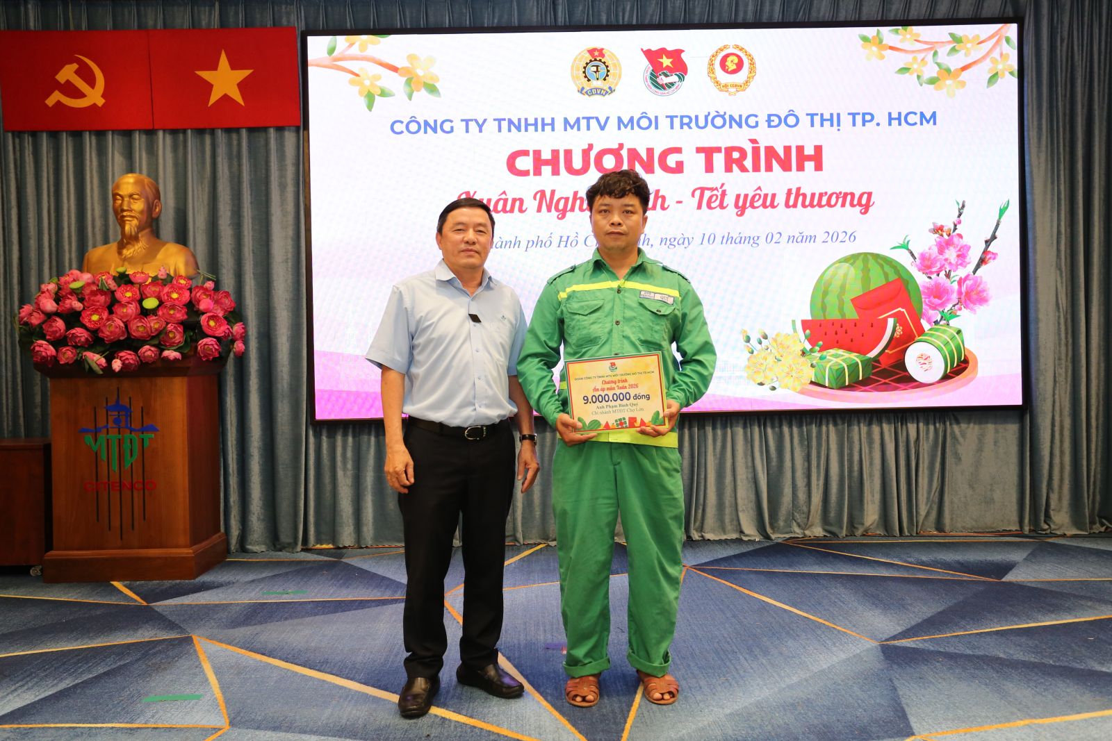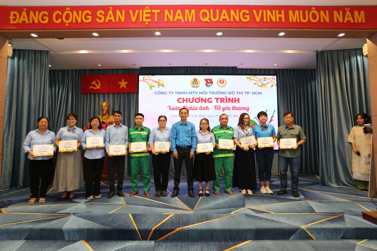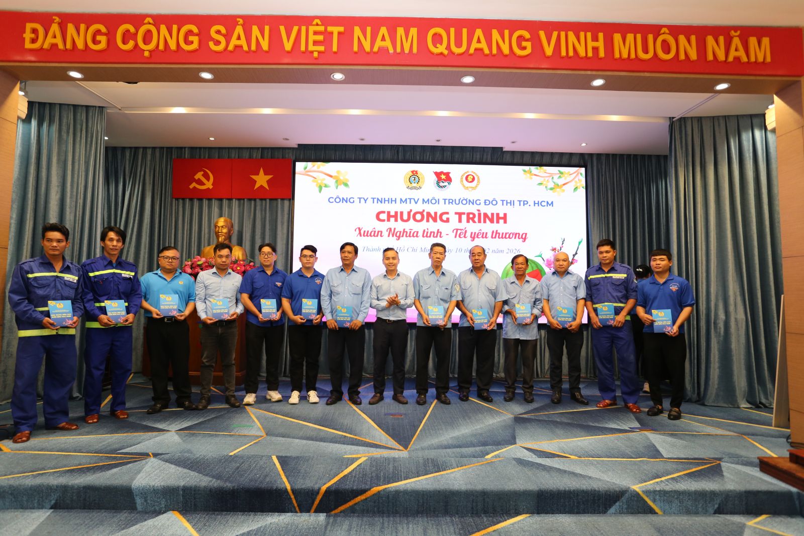 Hòa trong không khí rộn ràng chào đón Tết, sáng ngày 10/02/2026, Công đoàn Công ty TNHH MTV Môi trường đô thị Thành phố Hồ Chí Minh phối hợp Đoàn Thanh niên Công ty và Hội Cựu chiến binh Công ty cùng tổ chức Chương trình “Xuân nghĩa tình – Tết yêu thương” năm 2026, nhằm thể hiện vai trò, trách nhiệm của các tổ chức đoàn thể trong công tác chăm lo đời sống vật chất, tinh thần cho cán bộ, đoàn viên, hội viên, người lao động, đặc biệt là cán bộ, đoàn viên, hội viên, người lao động Công ty mắc bệnh hiểm nghèo, gia đình có hoàn cảnh khó khăn góp phần lan tỏa tinh thần tương thân tương ái, xây dựng môi trường làm việc nhân văn, đoàn kết, nghĩa tình trong dịp Tết Nguyên đán năm 2026.