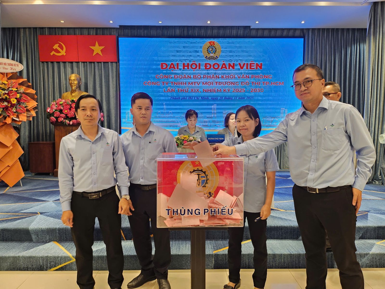 Thực hiện Kế hoạch số 55/KH-CĐ ngày 20/10/2025 của Ban Chấp hành Công đoàn Công ty TNHH MTV Môi trường đô thị TP.HCM về tổ chức Đại hội Công đoàn Bộ phận các đơn vị trực thuộc, tiến tới Đại hội Đại biểu Công đoàn Công ty TNHH MTV Môi trường đô thị TP.HCM lần thứ XIX, nhiệm kỳ 2025 – 2030. Từ ngày 25/11/2025 đến ngày 28/11/2025, được sự chấp thuận của Ban Thường vụ Công đoàn Công ty và cấp uỷ các đơn vị, lần lượt các Công đoàn Bộ phận đã tổ chức Đại hội Công đoàn Bộ phận nhiệm kỳ 2025 – 2030.