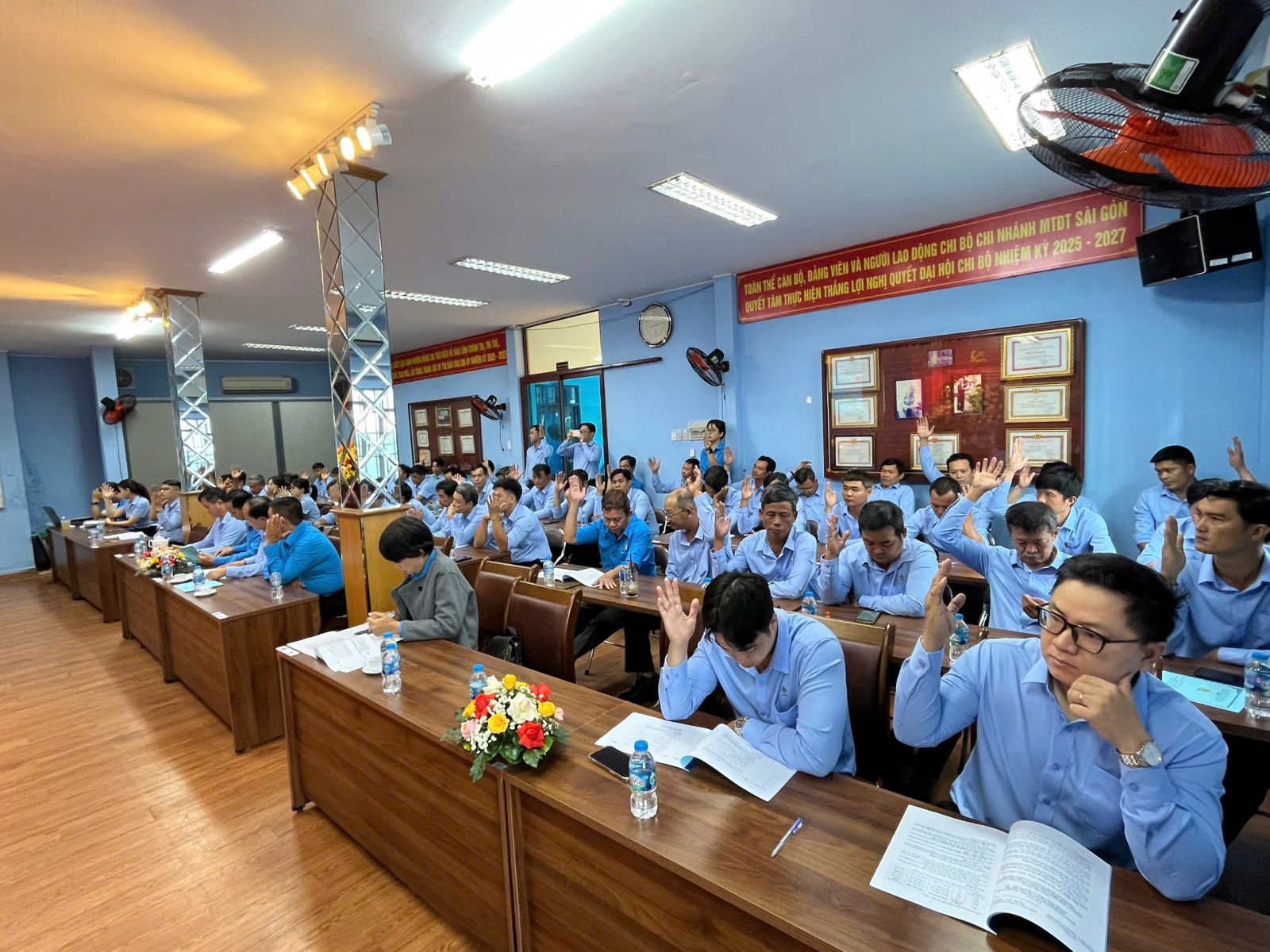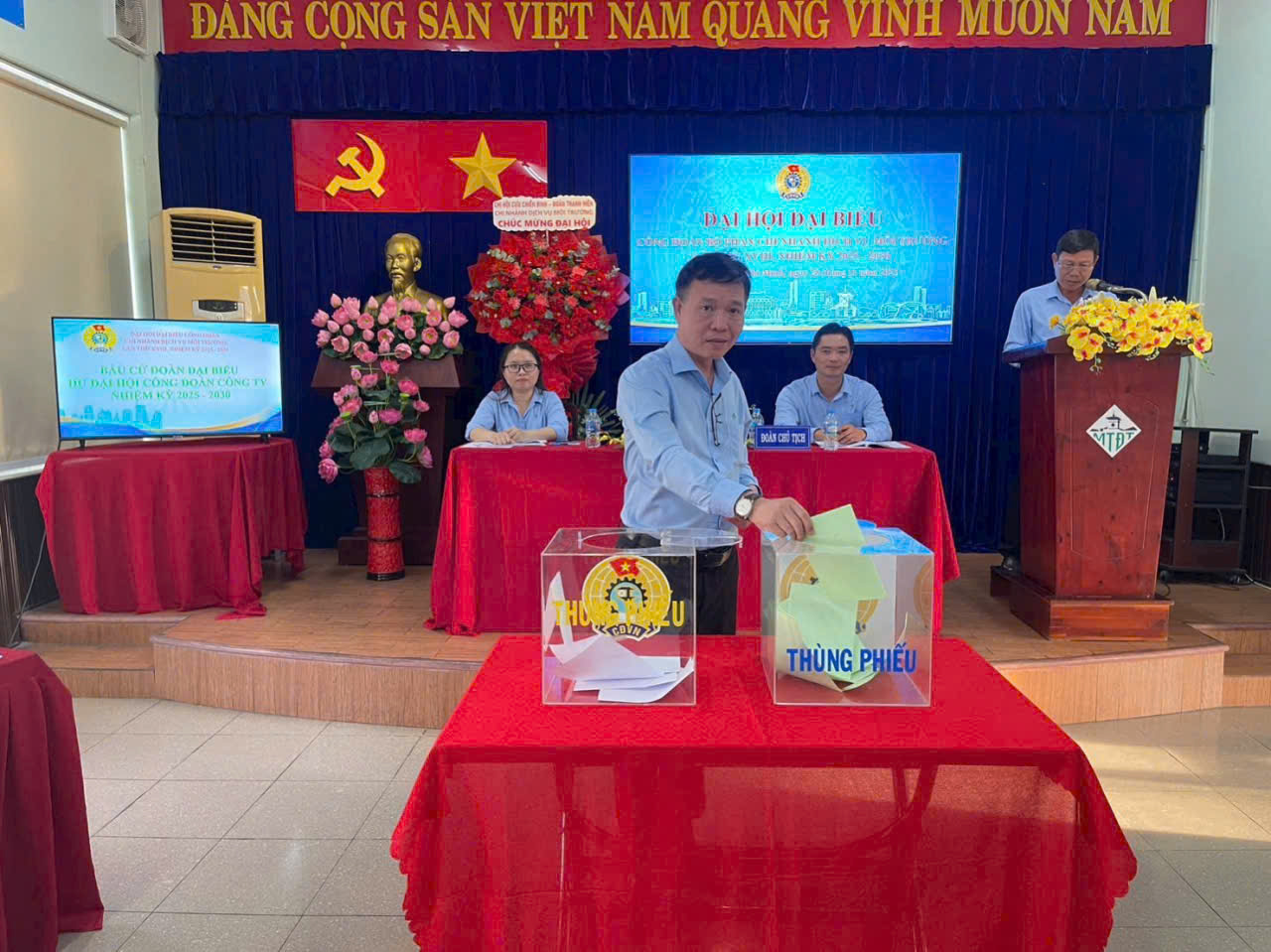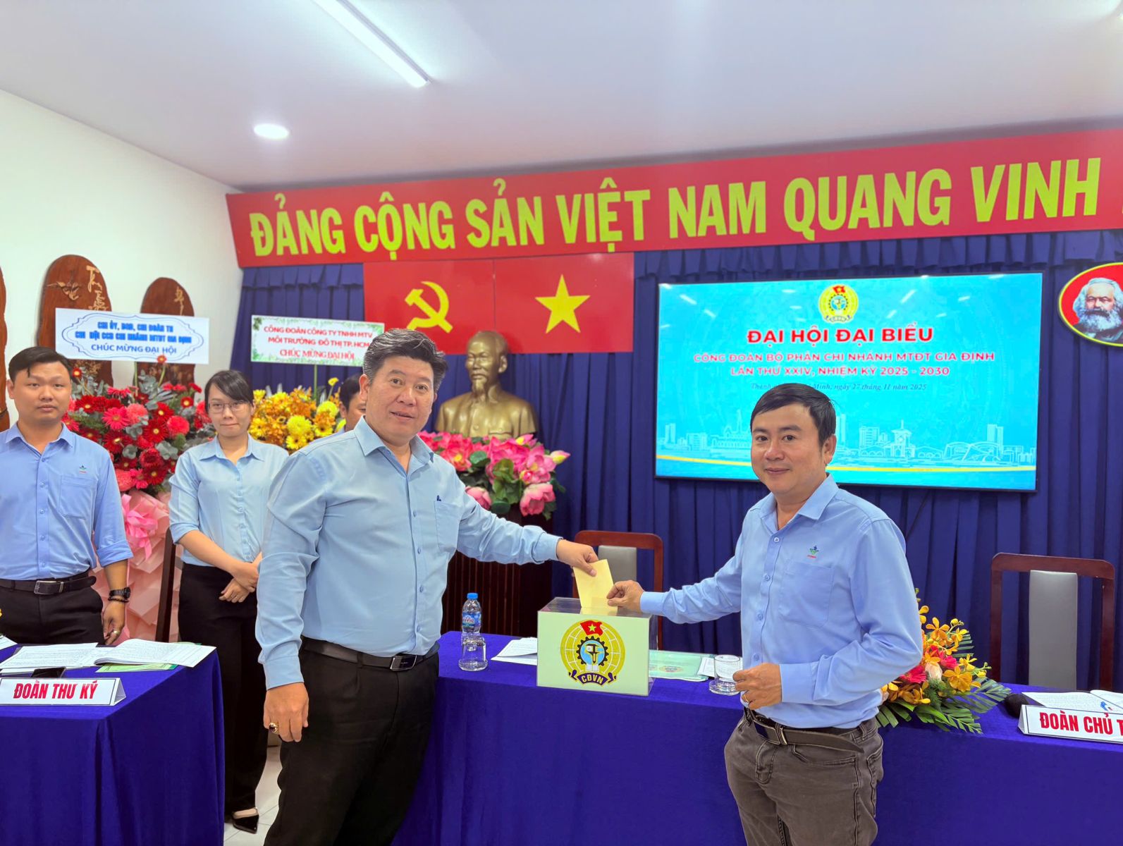3. Đại hội Công đoàn bộ phận Chi nhánh Môi trường đô thị Sài Gòn, nhiệm kỳ 2025 – 2030, đã bầu ra Ban chấp hành Công đoàn Chi nhánh gồm 05 đồng chí: Đ/c Hồ Thanh Tài, Đ/c Nguyễn Thị Xuân Nương, Đ/c Trương Phi Long, Đ/c Hứa Minh Tuấn, Đ/c Nguyễn Thạch Tiến