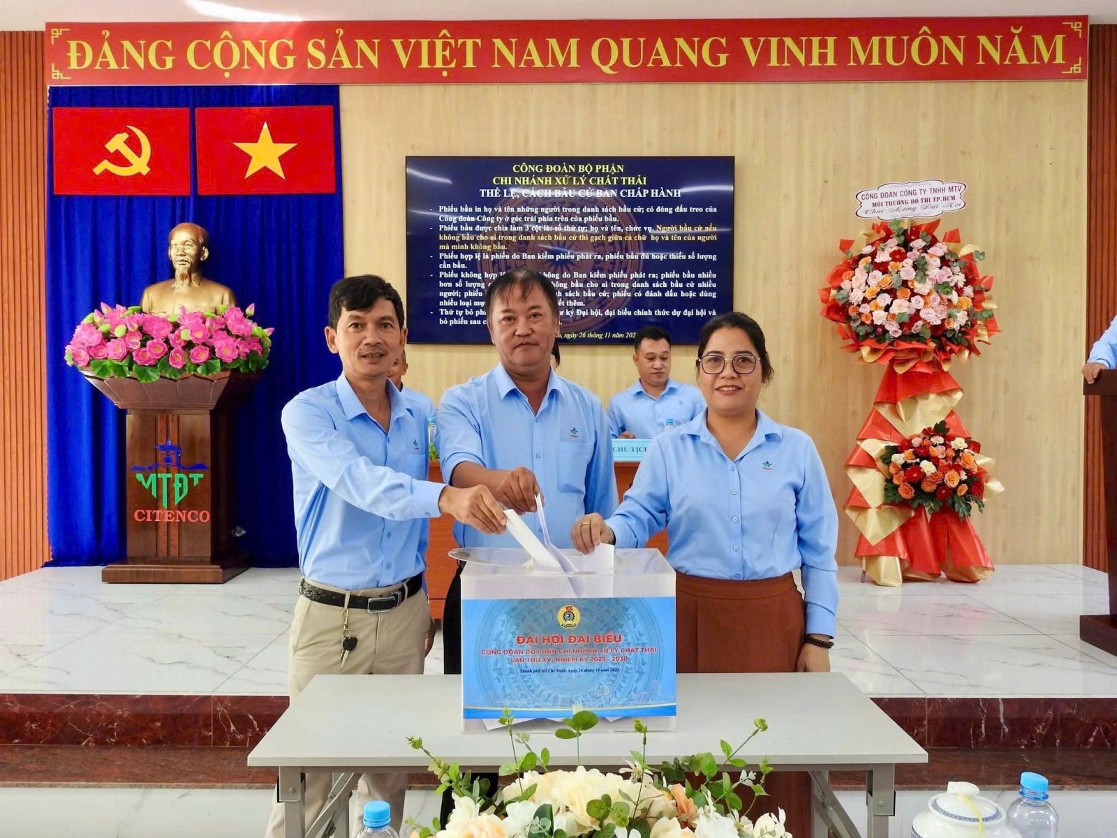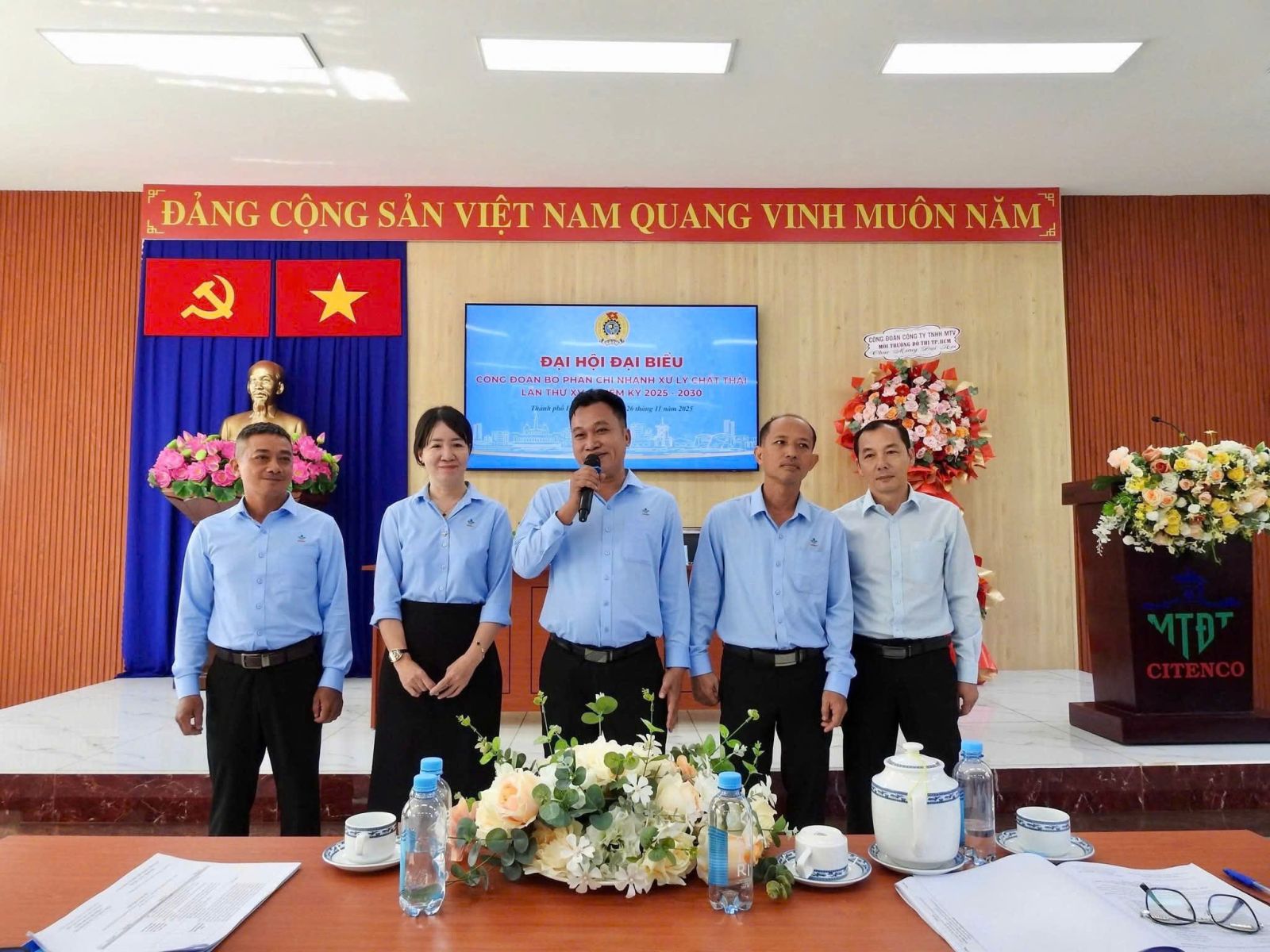 2. Đại hội Công đoàn bộ phận Chi nhánh Xử lý chất thải, nhiệm kỳ 2025 – 2030, đã bầu ra Ban chấp hành Công đoàn Chi nhánh gồm 05 đồng chí: Đ/c Nguyễn Thị Hồng Chi, Đ/c Huỳnh Thái Phong, Đ/c Bùi Phúc Tường, Đ/c Bùi Trương Vinh, Đ/c Nguyễn Kim Xuyên