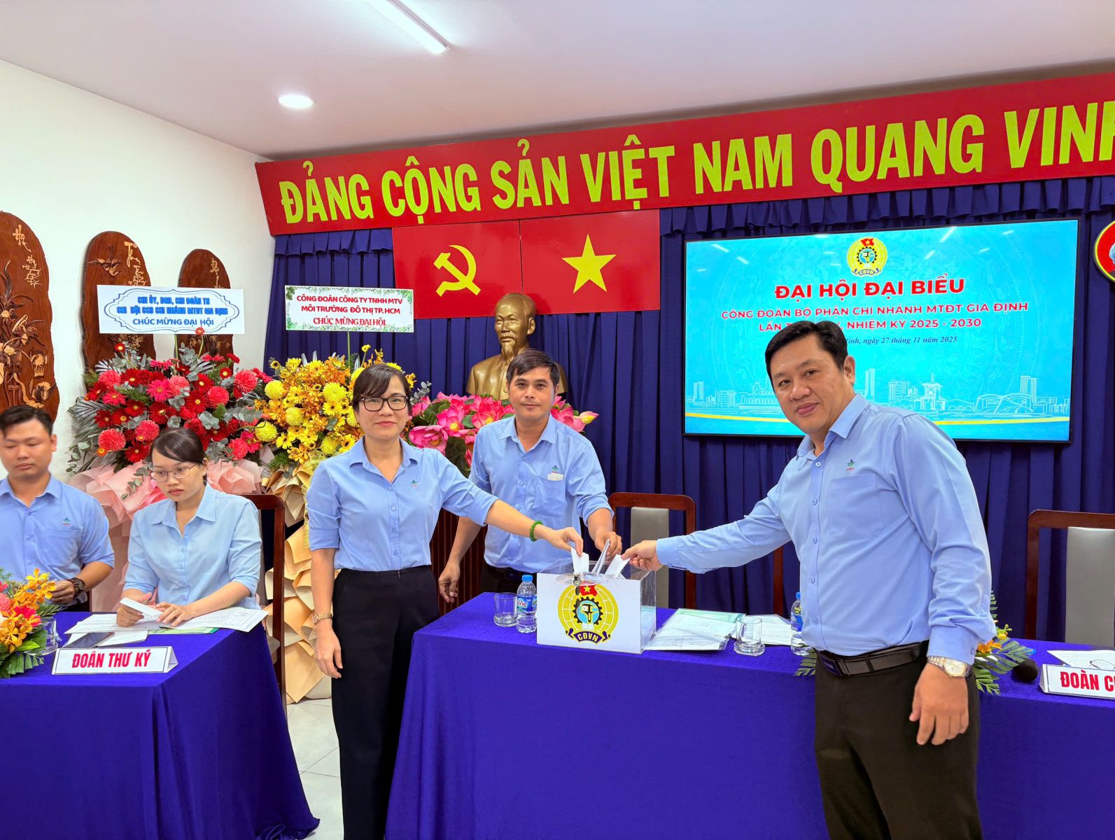 4. Đại hội Công đoàn bộ phận Chi nhánh Môi trường đô thị Gia định, nhiệm kỳ 2025 – 2030, đã bầu ra Ban chấp hành Công đoàn Chi nhánh gồm 07 đồng chí: Đ/c Tăng Thị Mỹ Hạnh, Đ/c Nguyễn Thu Hiền, Đ/c Đặng Văn Lâu, Đ/c Lê Văn Lộc, Đ/c Nguyễn Ngọc Thiện, Đ/c Trần Ngọc Tỏa, Đ/c Lê Vân Việt