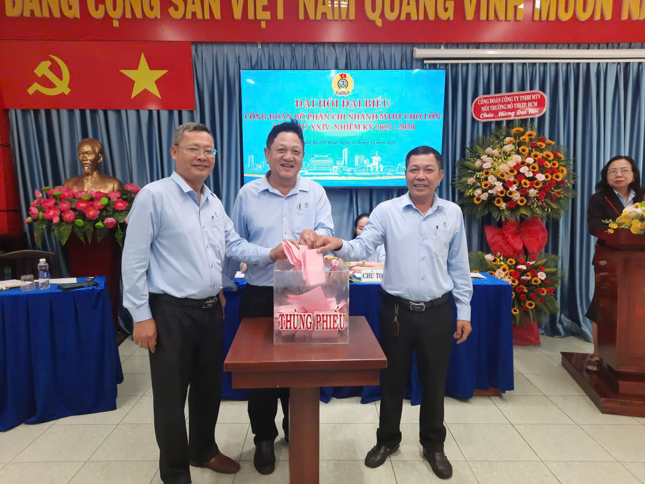 1. Đại hội Công đoàn bộ phận Chi nhánh Môi trường đô thị Chợ Lớn, nhiệm kỳ 2025 – 2030, đã bầu ra Ban chấp hành Công đoàn Chi nhánh gồm 07 đồng chí: Đ/c Phạm Thị Đèo, Đ/c Huỳnh Thị Ngọc Hân, Đ/c Huỳnh Thị Tý, Đ/c Dương Thanh Phúc, Đ/c Nguyễn Thị Kim Hằng, Đ/c Lê Dương Trung, Đ/c Nguyễn Thành Luận B