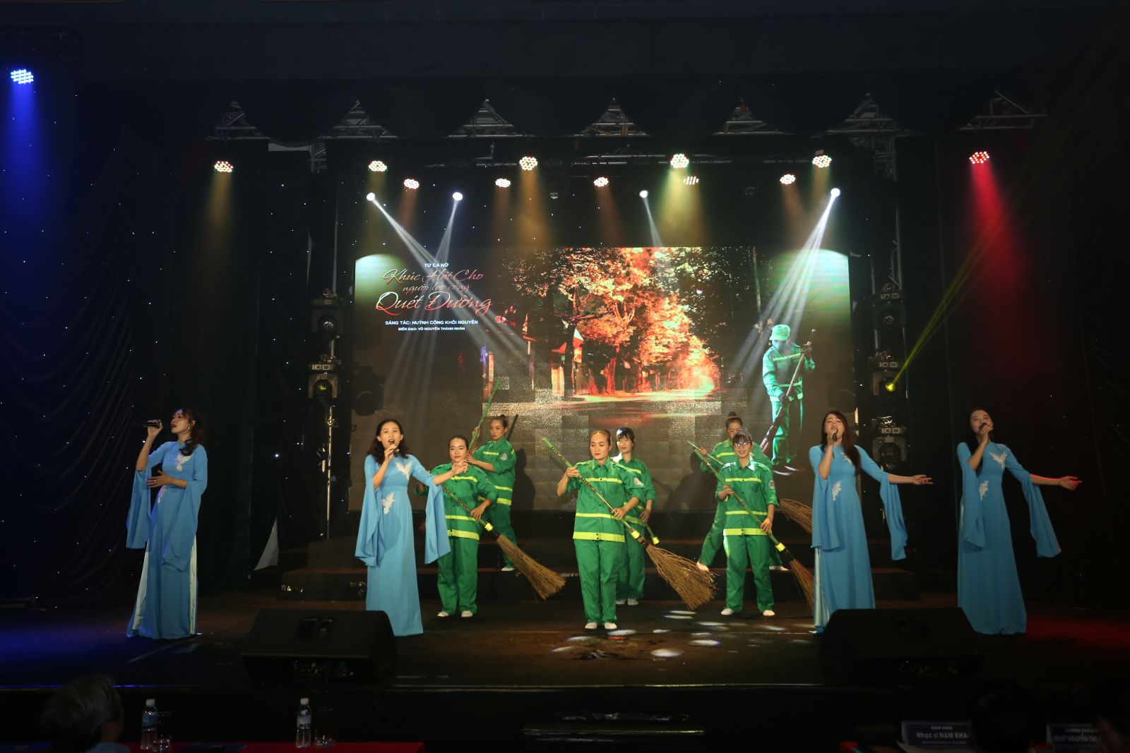 Khúc hát người lao công quét đường, sáng tác Huỳnh Công Khôi Nguyên, trình bày: Tứ ca và nhóm múa